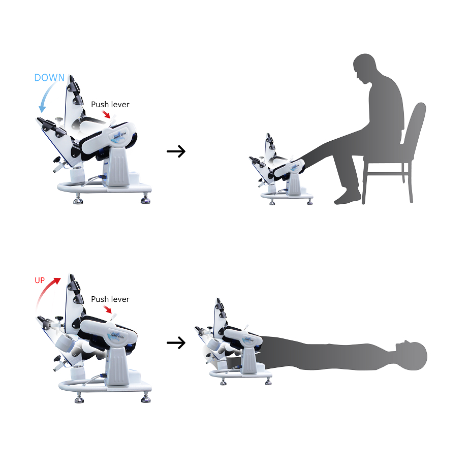 - The device can be used in either a seated or lying position, thanks to the adjustable positioning system.