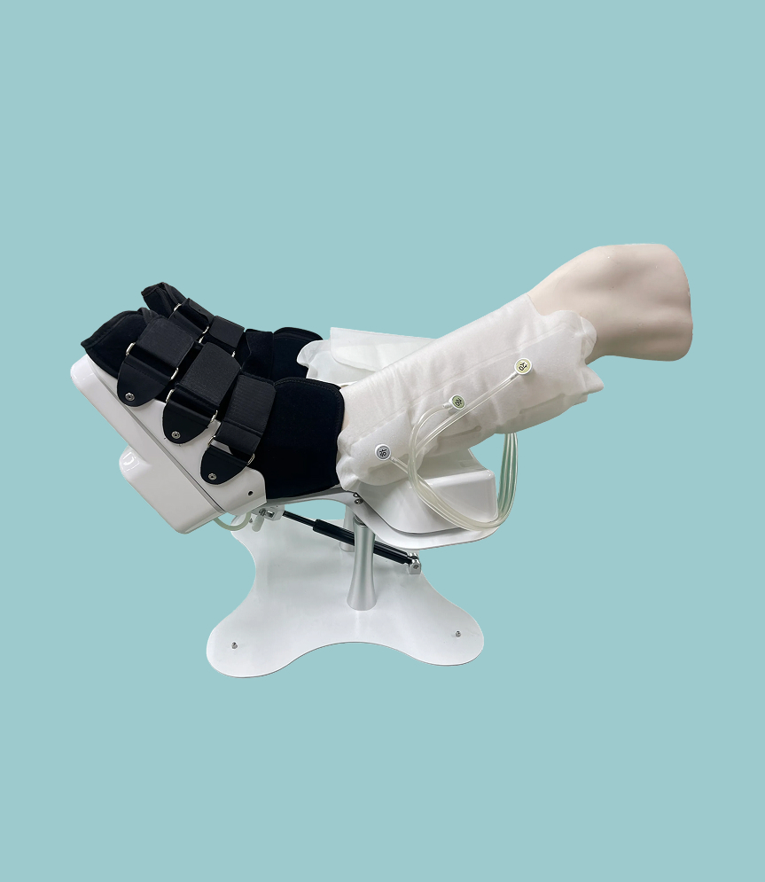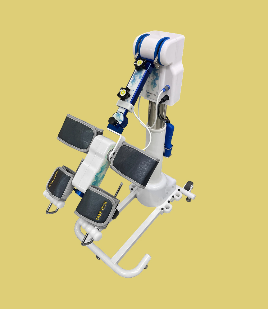 This equipment was developed to aid recovery after ankle joint surgery and is used during rehabilitation.